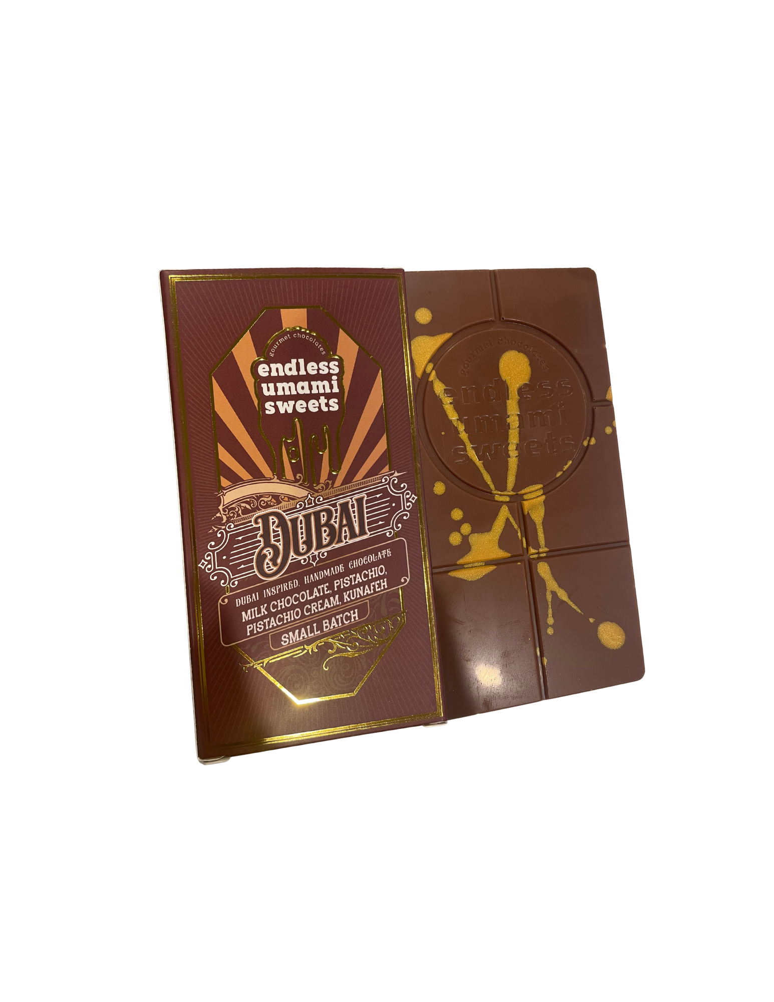 Experience the luxurious taste of our viral sensation "Dubai". Premium milk Belgian chocolate, pistachio nuts, pistachio cream and kunafeh.