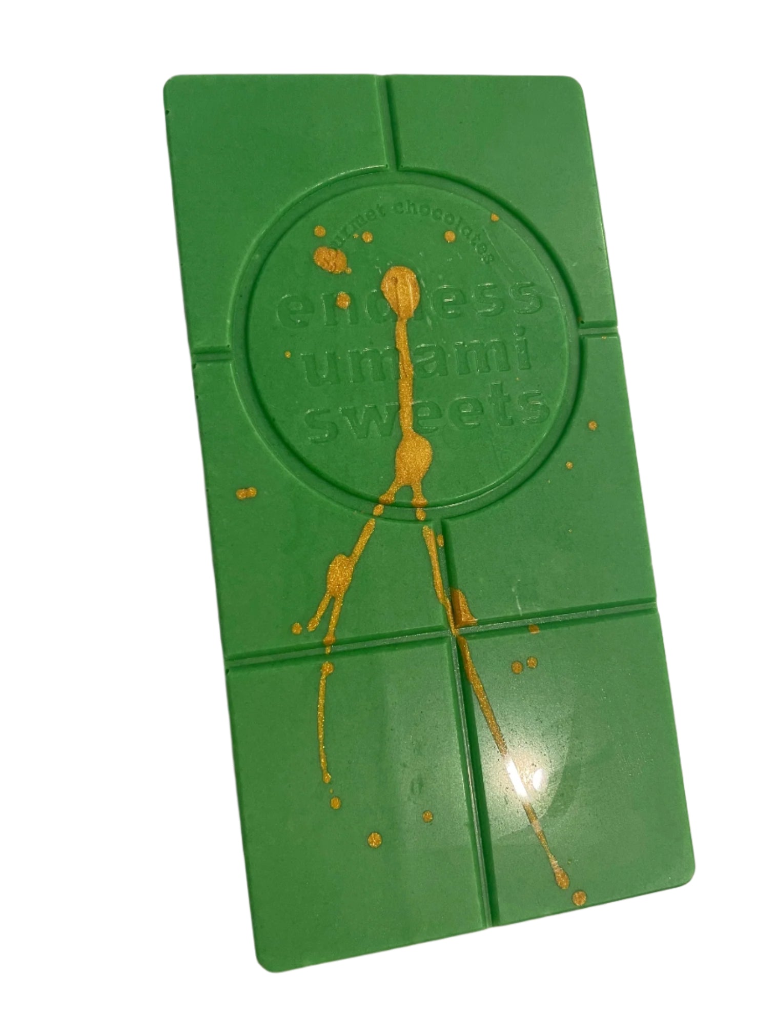 Creamy white chocolate infused with the unique, aromatic flavor of pandan, an Asian plant known for its coconut-vanilla essence. Paired with toasted coconut, rich cookie butter, and kunafeh, this bar is a tropical-inspired treat with a delightful crunch!