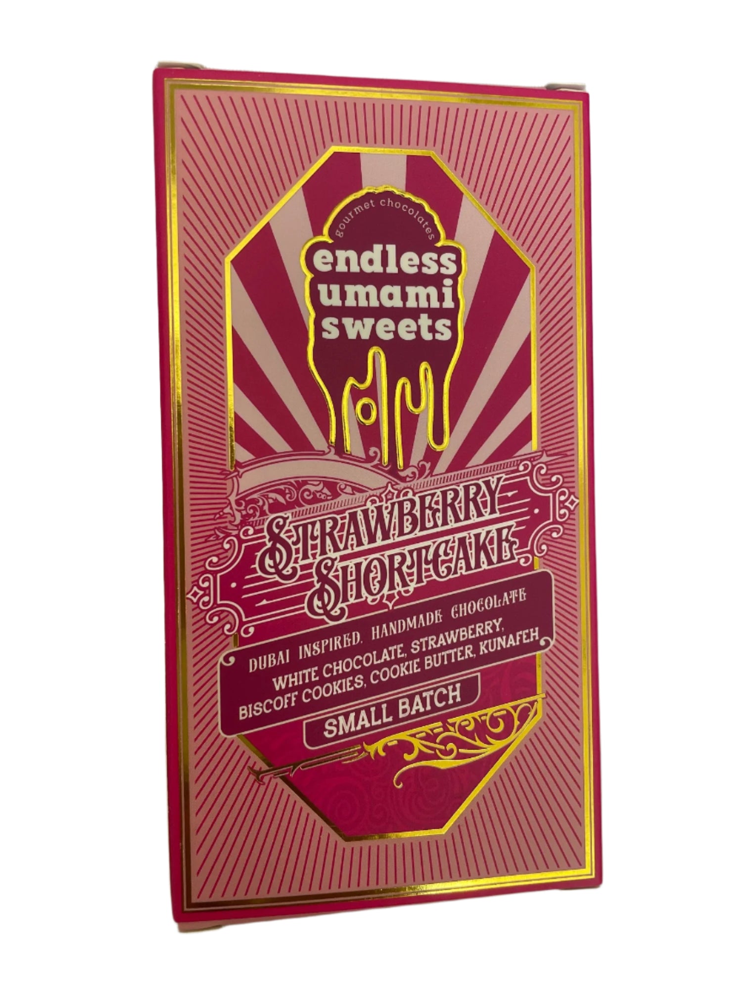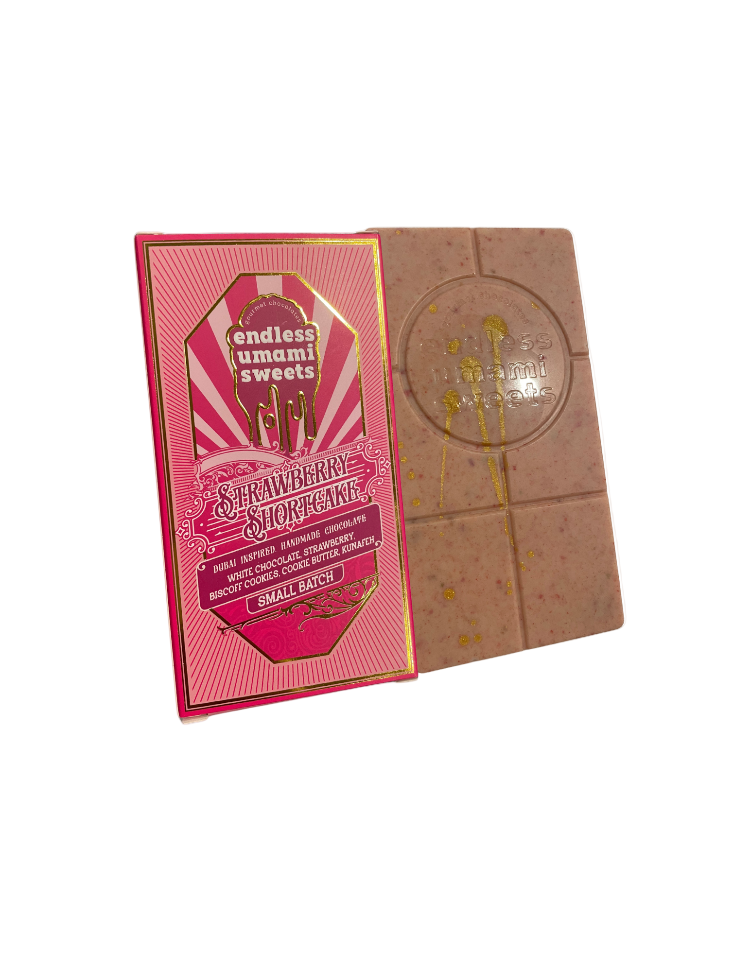 Like a bite of summer in every square! Creamy white chocolate infused with sweet strawberry bits and crunchy Biscoff cookies, layered with cookie butter and crispy kunafeh. It’s fruity, crumbly, and totally irresistible.